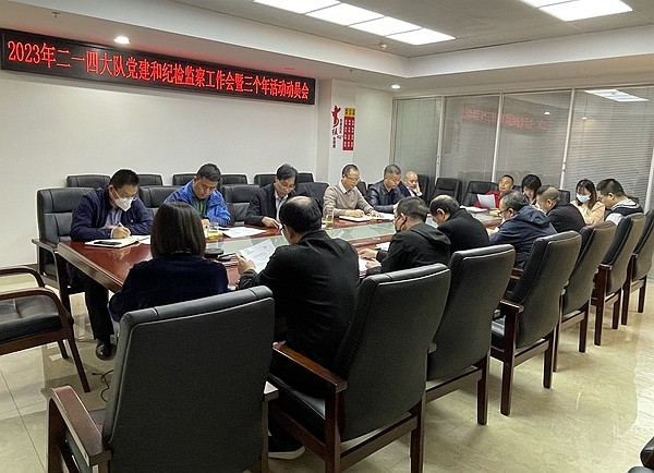 2023年3月9日,二一四大隊有限公司組織召開了黨建和紀檢監察工作會暨“三個年”活動動員部署會,公司領導班子成員、公司紀委委員、各黨支部書記、黨群工作部和紀監審計部相關人員參會。會議由公司黨委副書記、總經理司金強主持。
