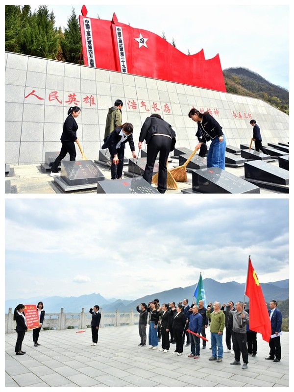 活動現場,莊嚴而肅穆,大家給烈士掃墓、向革命烈士紀念碑莊重地敬獻了花籃;紀念碑前全體黨員鏗鏘有力地重溫入黨誓詞,表達對黨的忠誠,繞行一周瞻仰烈士紀念碑,以沉重肅穆的心情對革命先烈表達深深的崇敬與追思。