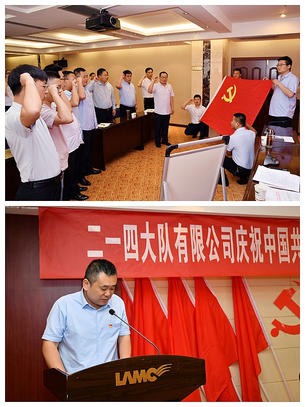 會議舉行了新黨員入黨宣誓儀式,在黨群工作部長華崢領誓下,全體黨員和5位新黨員同志高舉右手面對鮮紅的黨旗莊嚴宣誓,老黨員重溫入黨誓詞,新黨員代表高田做了表態發言。