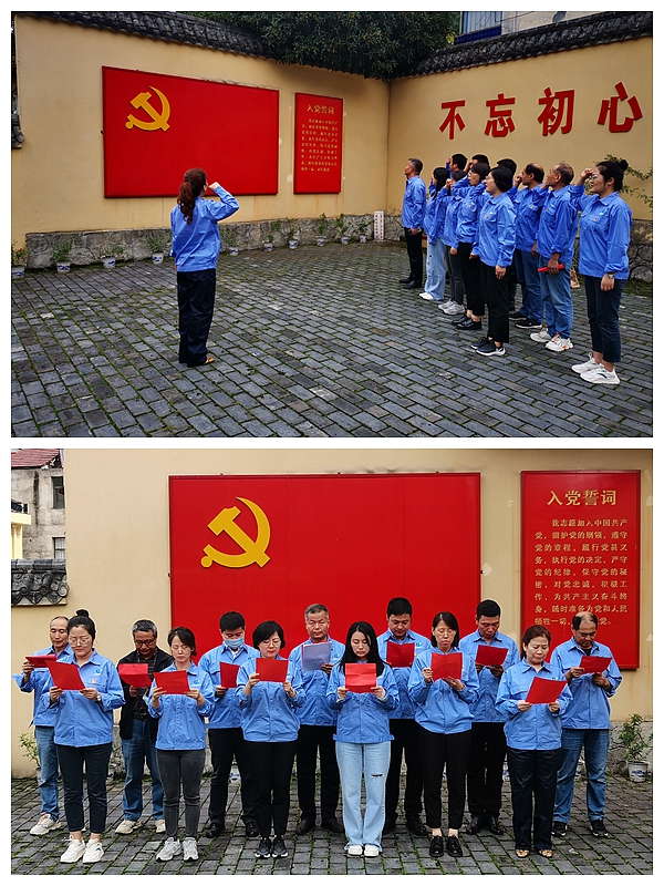小廣場黨旗下,在支部書記龍智湘的帶領(lǐng)下,同志們舉起右手,握緊拳頭,莊嚴(yán)宣誓為共產(chǎn)主義事業(yè)奮斗終身,為實(shí)現(xiàn)中華民族的偉大復(fù)興而努力奮斗,重溫入黨誓詞。隨后,集體詩歌朗誦《黨旗下》,所有人員精神抖擻、全神貫注,用抑揚(yáng)頓挫的聲音和激情昂揚(yáng)的語氣認(rèn)真誦讀每字每句,訴說著我們永遠(yuǎn)不變的莊嚴(yán)誓言。