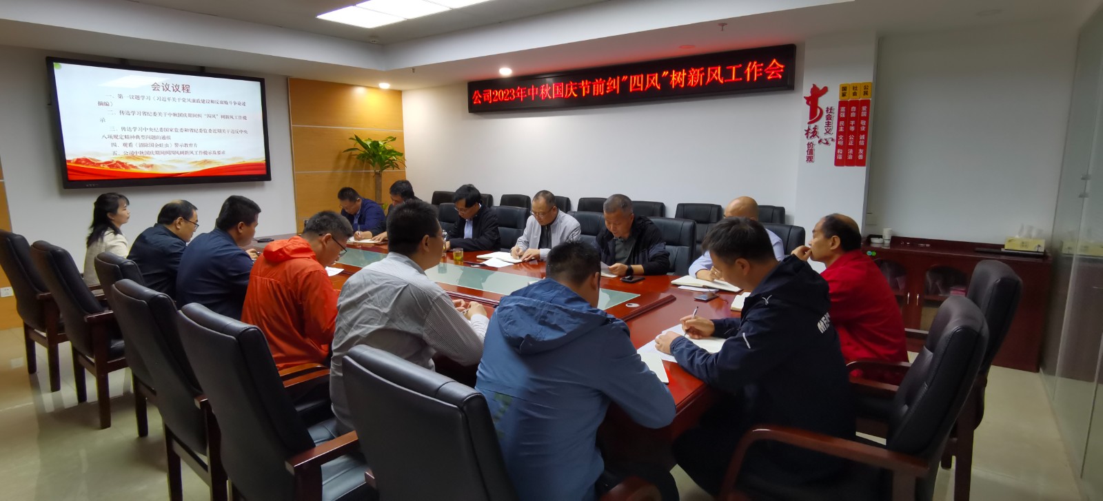 會議首先學(xué)習(xí)第一議題《習(xí)近平關(guān)于黨風(fēng)廉政建設(shè)和反腐敗斗爭論述摘編》部門內(nèi)容;傳達(dá)學(xué)習(xí)了省紀(jì)委關(guān)于《中秋國慶期間糾“四風(fēng)”樹新風(fēng)工作提示》的通知文件,通報了中、省紀(jì)委監(jiān)委節(jié)前發(fā)布的關(guān)于違反中央八項規(guī)定精神問題典型案例;集中觀看了廉政教育片《清除國企蛀蟲》—“靠企吃企”典型案件警示錄;安排部署了公司中秋國慶期間糾“四風(fēng)”樹新風(fēng)相關(guān)工作及要求。