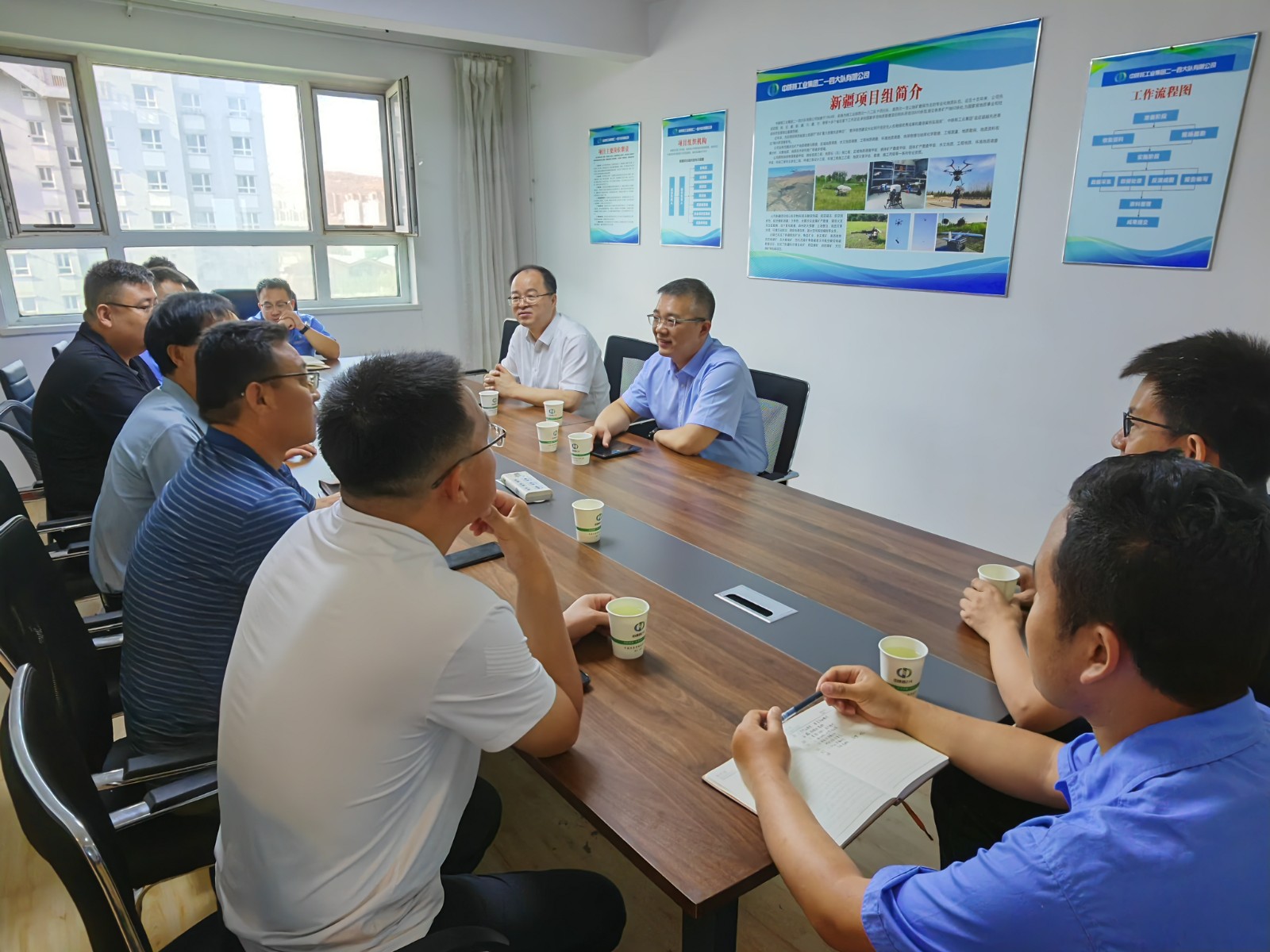 范明一行首先看望慰問了項目部一線職工,并為大家送去了防暑降溫慰問品。隨后聽取了項目匯報,并對業務開展、市場開拓、黨建工作以及需要解決的問題等方面進行了全面了解和深入調研。