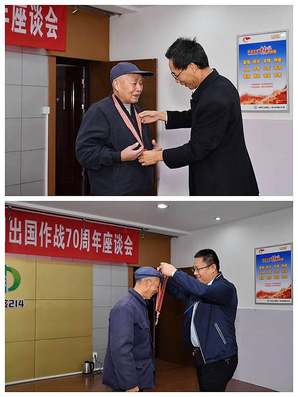 1950年10月,英雄的中國人民志愿軍將士肩負民族的期望,高舉保家衛國、反抗侵略的正義旗幟,雄赳赳,氣昂昂,跨過鴨綠江,舍生忘死的浴血奮戰,贏得了抗美援朝戰爭的偉大勝利,建立了不朽的歷史功勛。公司黨委書記、董事長鄧盛波和副總經理、工會主席董興武親自為四名老戰士們佩戴了中國人民志愿軍抗美援朝出國作戰70周年紀念勛章,并送上鮮花,感謝這些老戰士為國家和單位作出的貢獻。座談會上,老戰士講述了當年出國作戰的戰斗場面及參與朝鮮和平建設的經歷,并感謝黨和國家的關心、關愛。