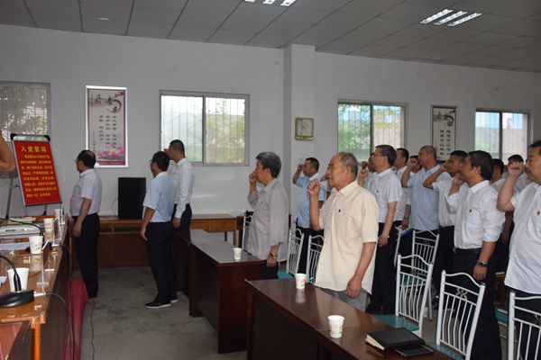 會議舉行了“我是光榮的共產黨員”集中宣誓儀式,在黨群工作部長華崢領誓下,全體黨員和3位新黨員同志高舉右手面對鮮紅的黨旗莊嚴宣誓,老黨員重溫入黨誓詞,新黨員代表穆偉做了表態發言。